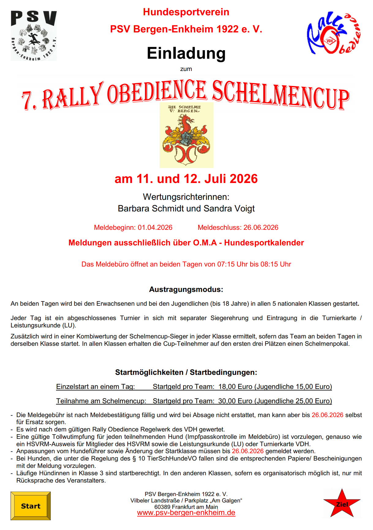 Die Anmeldung zu unserem 7. großen Rally Obedience Schelmencup öffnet am 01.04.2026! Gestartet wird in allen 5 nationalen Klassen und erstmals auch in der FCI-Klasse! Anmeldung bitte ausschließlich über O.M.A. Wir freuen uns auf zahlreiche Meldungen und zwei tolle Turniertage! Einladung als PDF